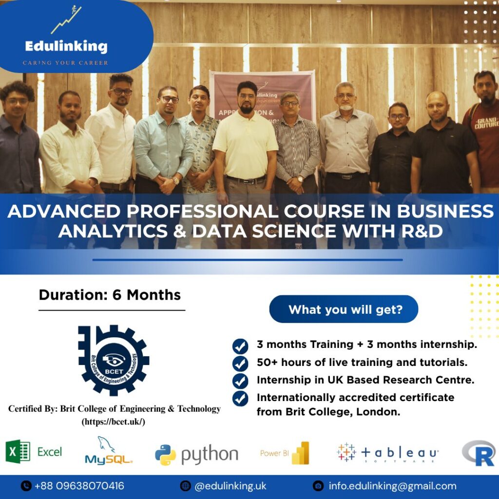 Professional Certificate in Business Analytics & Data Science with R&D + 3 months internship.